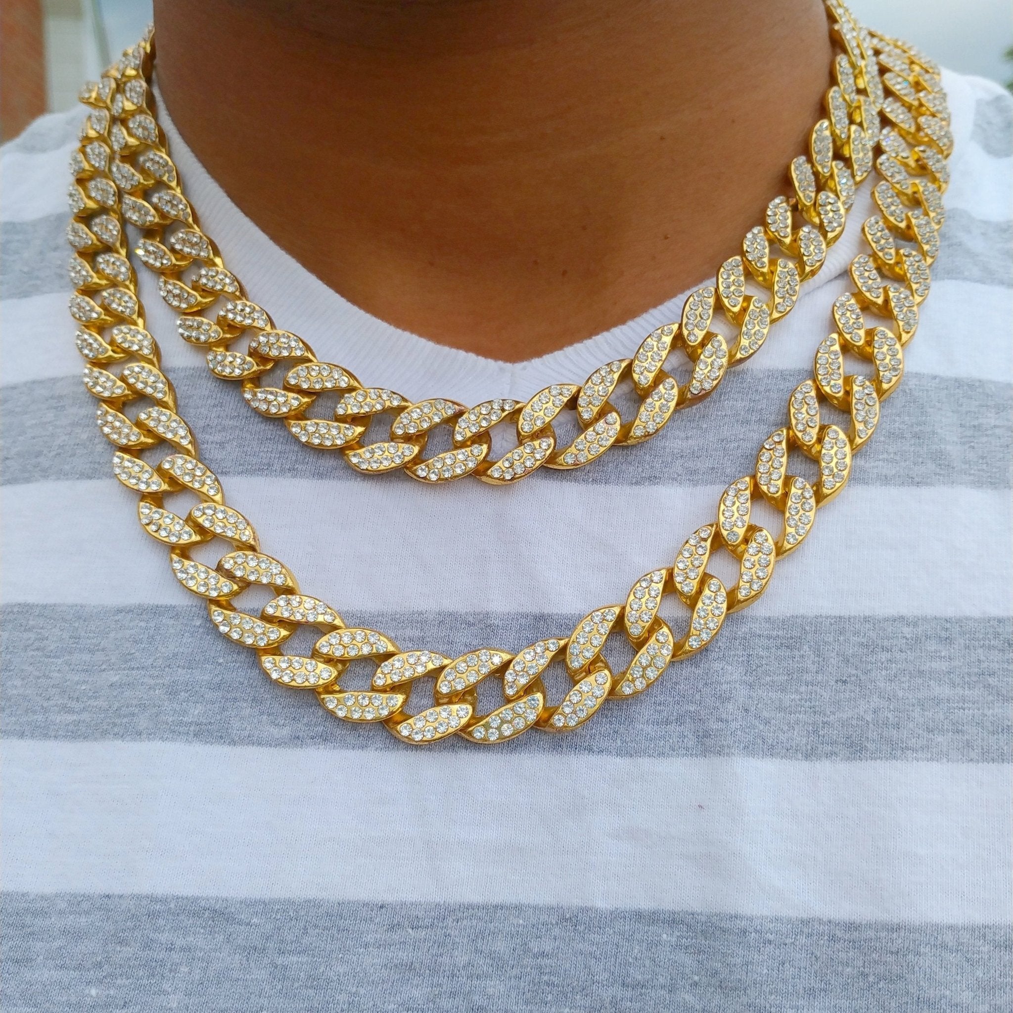 - 24" 15mm 18K Gold Plated CZ Diamond Cuban Link Chain