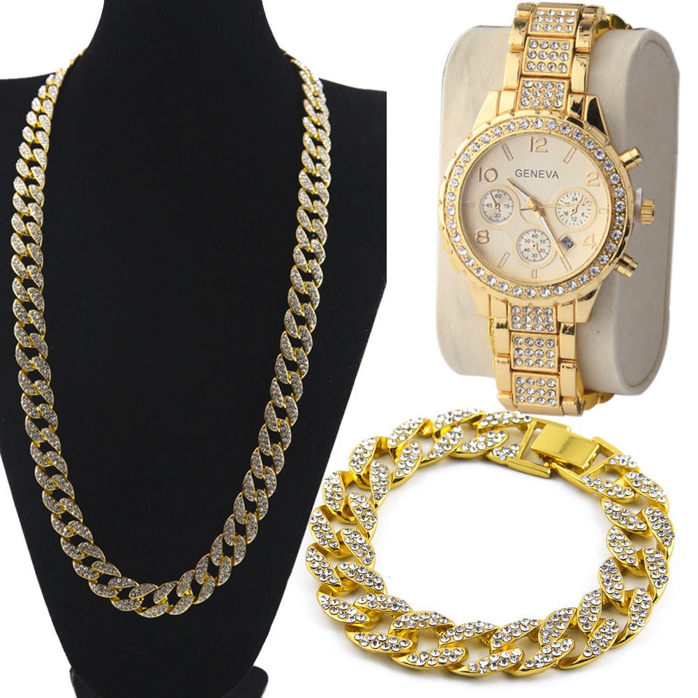 Complete your jewelry collection right here with the Cuban Link watch set. Everything you need to look like you're ready for the lights, camera and of course some action!