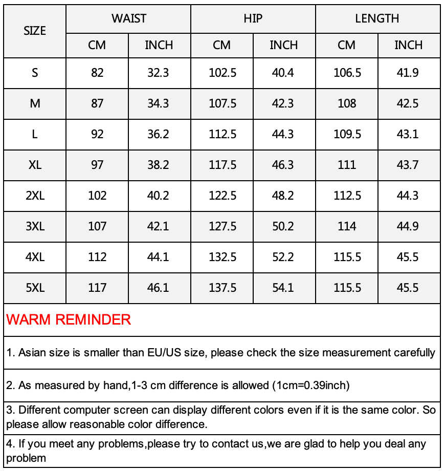 Size S/M/L/XL/2XL/3XL/4XL/5XL