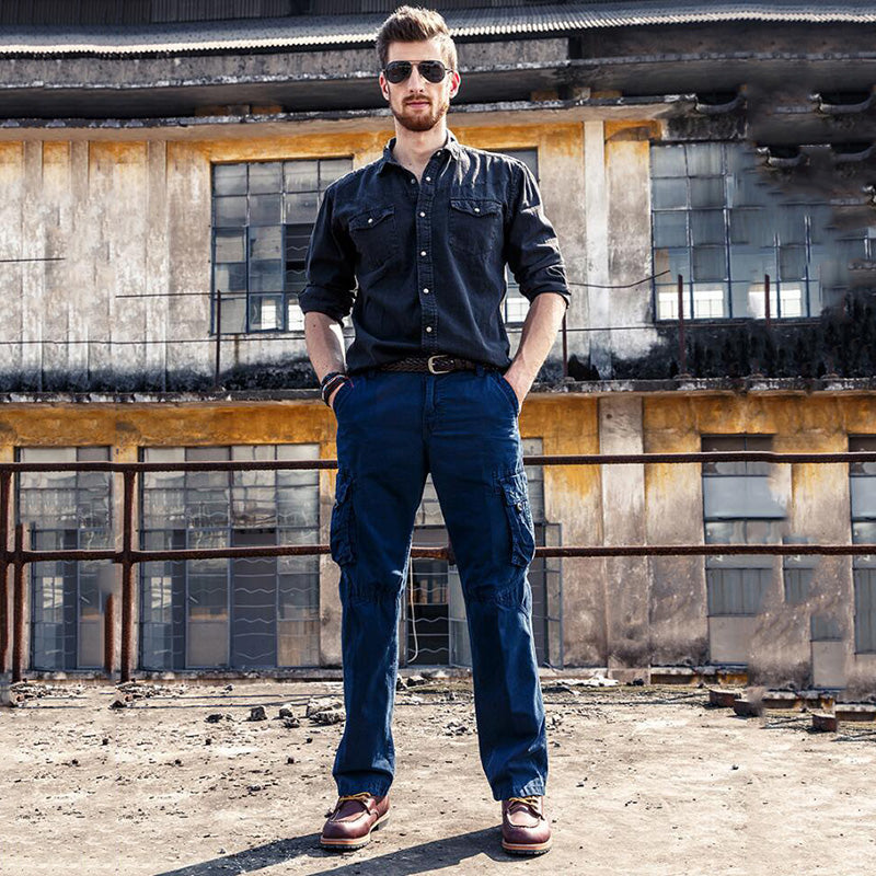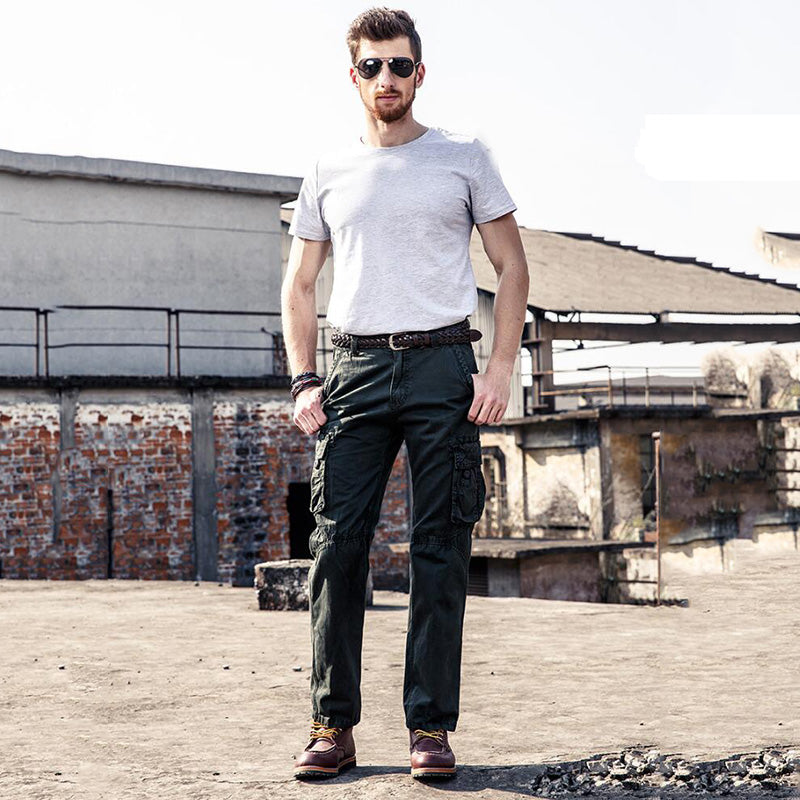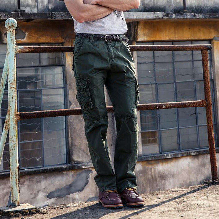 • Solid Color Cotton Pocket Men's Cargo Pants