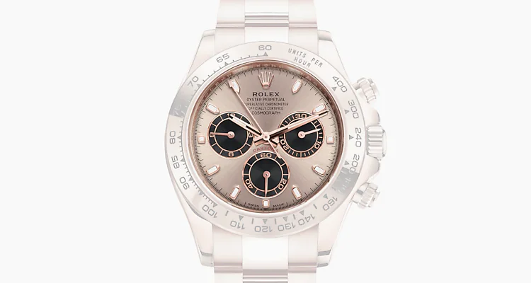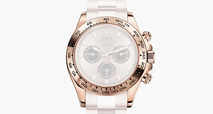 With its tachymetric scale, its three counters and its pushers, the Cosmograph Daytona was designed to be the ultimate timing tool for endurance racing drivers. The bezel features a tachymetric scale to read average speed over a given distance based on elapsed time. This scale offers optimal legibility, making the Cosmograph Daytona the ideal instrument for measuring speeds up to 400 units per hour, expressed in kilometres or miles.
