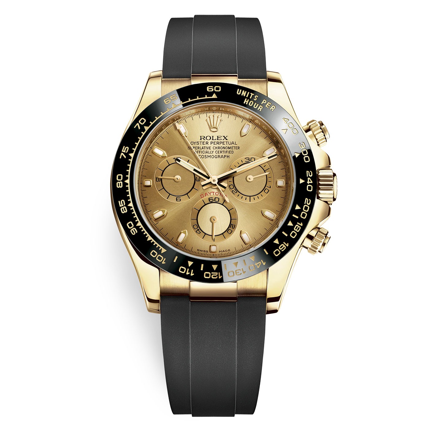 Rolex Cosmograph Daytona 116518LN Champagne Dial Oysterflex Yellow Gold Mens Watch