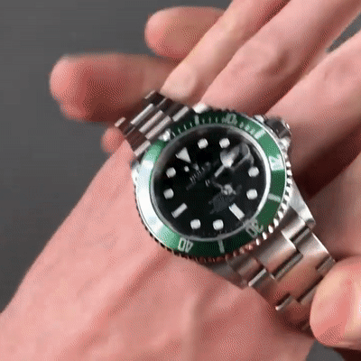 Bezel: Special time-lapse unidirectional rotating bezel with green insert.