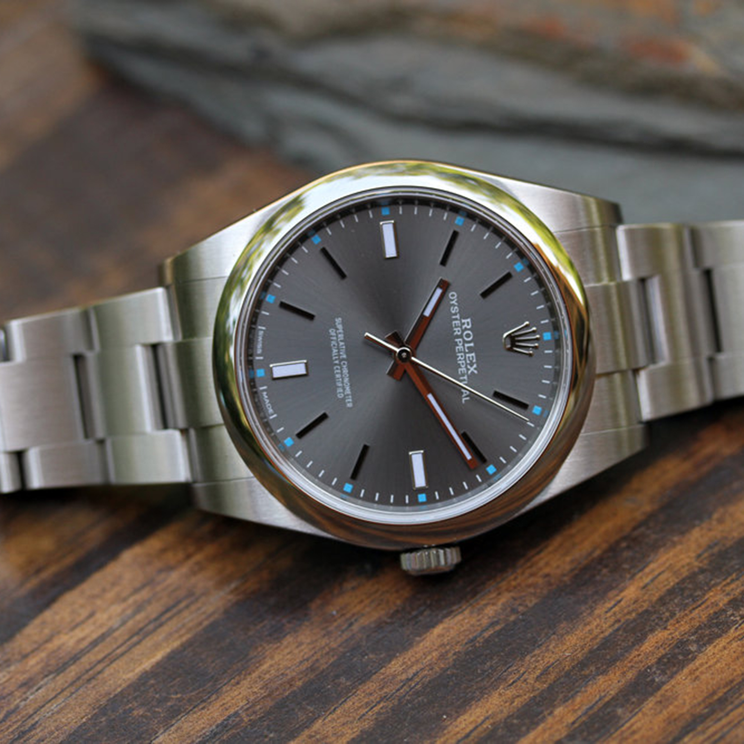 Rolex Oyster Perpetual 39mm Dark Rhodium Dial Watch 114300-0001