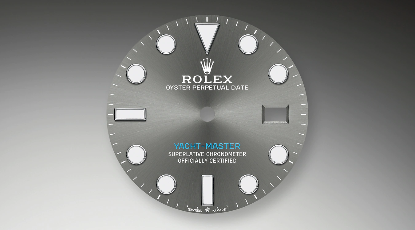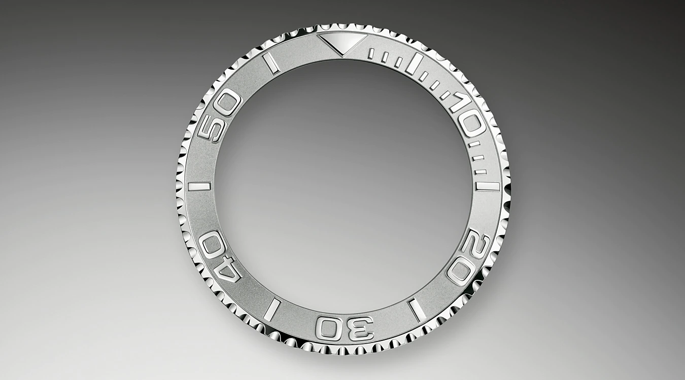 The Yacht-Master's bidirectional rotatable 60-minute graduated bezel is made of precious materials. The raised polished numerals and graduations stand out clearly against a matt, sand-blasted background. This functional bezel – which allows the wearer to calculate, for example, the sailing time between two buoys – is also a key component in the model's distinctive visual identity.
