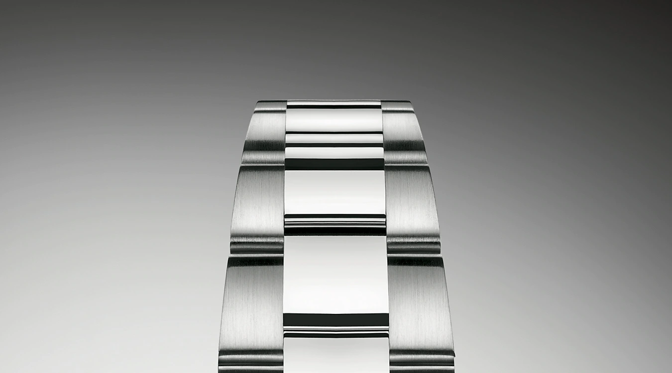 The Oyster bracelet is a perfect alchemy of form and function, aesthetics and technology, designed to be both robust and comfortable. It is equipped with an Oysterlock folding clasp, which prevents accidental opening and the Easylink comfort extension link, also exclusive to Rolex. This ingenious system allows the wearer to increase the bracelet length by approximately 5 mm, providing additional comfort in any circumstance.