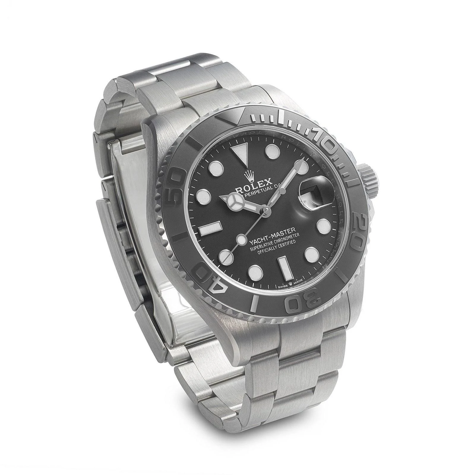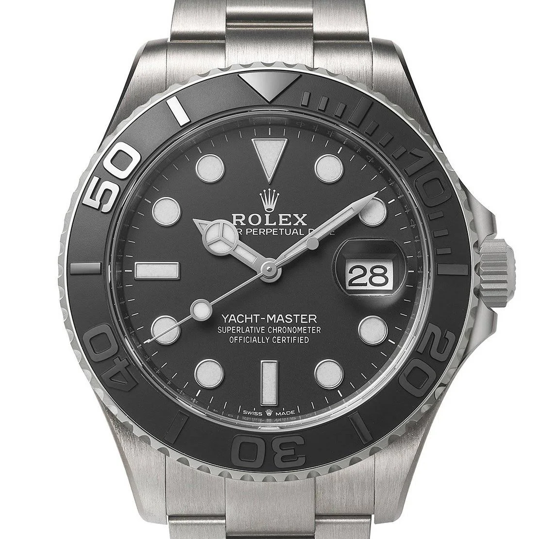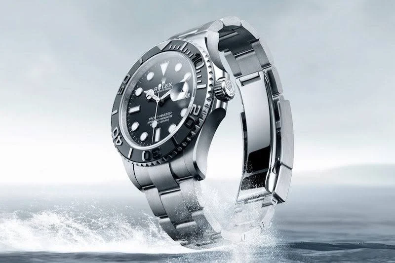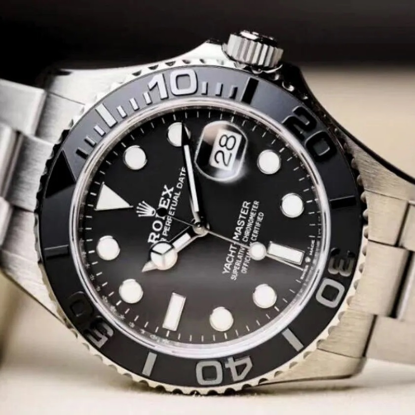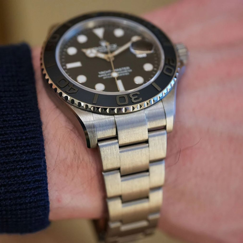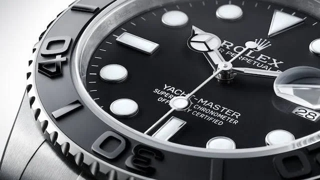The 42mm monobloc middle case of the Yacht-Master 42 is intricately designed with a screw-down case back and winding crown, ensuring its water resistance of up to 100 meters. The bidirectional rotatable 60-minute graduated bezel with a matte black Cerachrom insert in ceramic is another highlight of this timepiece. The polished raised numerals and graduations on the bezel add a touch of sophistication and functionality to the watch, allowing for easy tracking of elapsed time during diving or other outdoor activities.