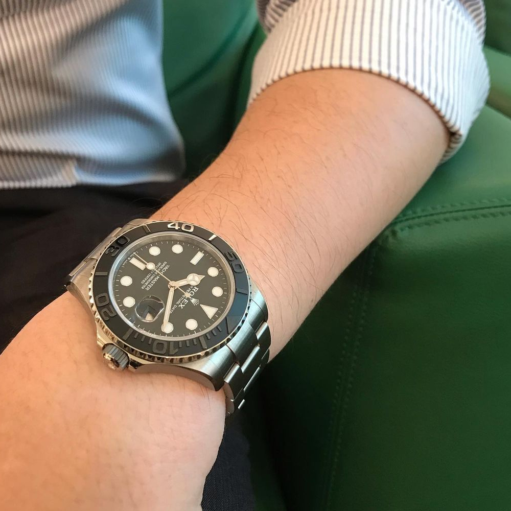 The dial of the Yacht-Master 42 reference 226627 is sleek and minimalist, featuring a black color scheme that exudes elegance and sophistication. The luminous hour markers and hands provide excellent legibility in any lighting conditions, ensuring that time can be easily read at a glance. The date window at 3 o'clock adds a practical feature to the watch, making it a versatile timepiece for everyday wear.