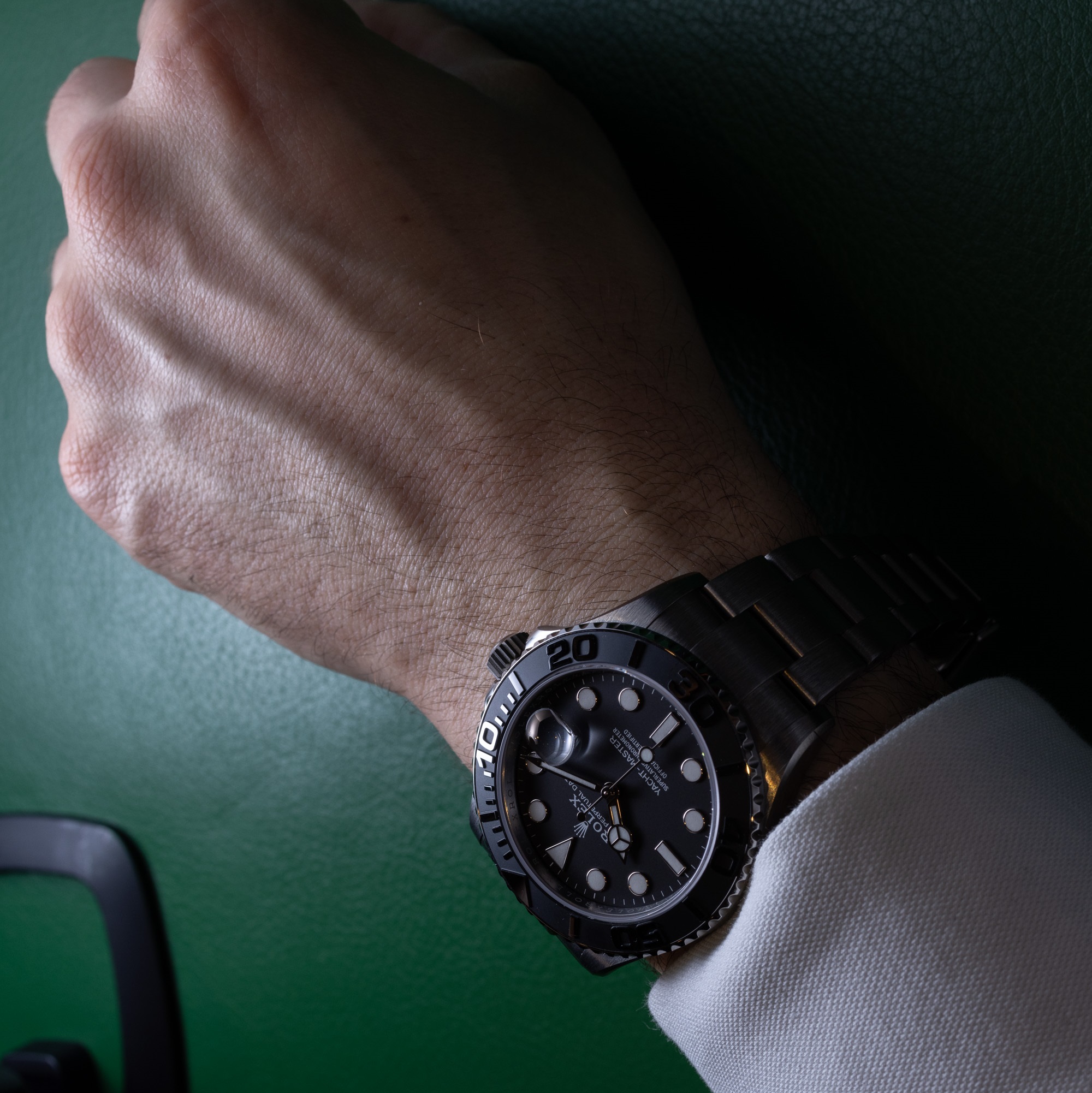 The Oyster bracelet of the Yacht-Master 42 is made from RLX titanium with ceramic inserts, providing both durability and flexibility. The bracelet features the Easylink extension link, allowing for easy adjustment of the bracelet length by approximately 5mm for a perfect fit on the wrist. The Oysterlock safety clasp ensures a secure and comfortable fit, making it ideal for sports and outdoor activities.