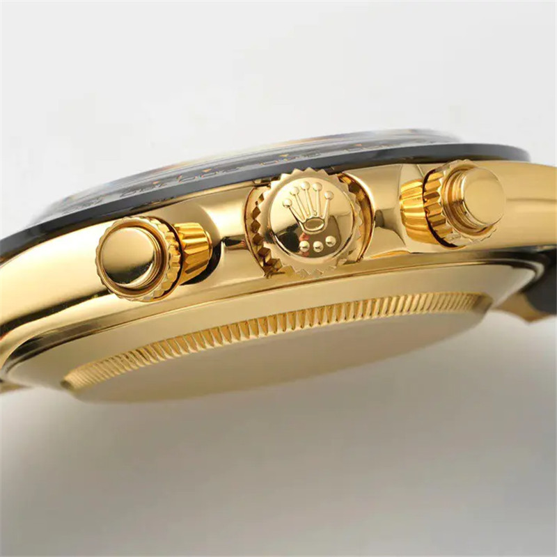 The Daytona’s chronograph feature functions are activated by pushers that screw down like the winding crown when they are not in use, guaranteeing waterproofness to 100 metres. One press to start, stop or reset the chronograph produces a crisp, clear click that was perfected using the most advanced technology. watchmakers also perfected the mechanism to suit the ideal finger pressure on the pushers, and engineered it to provide an instantaneous and accurate start to the timing without sacrificing reliability.