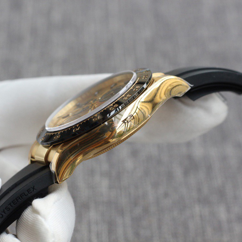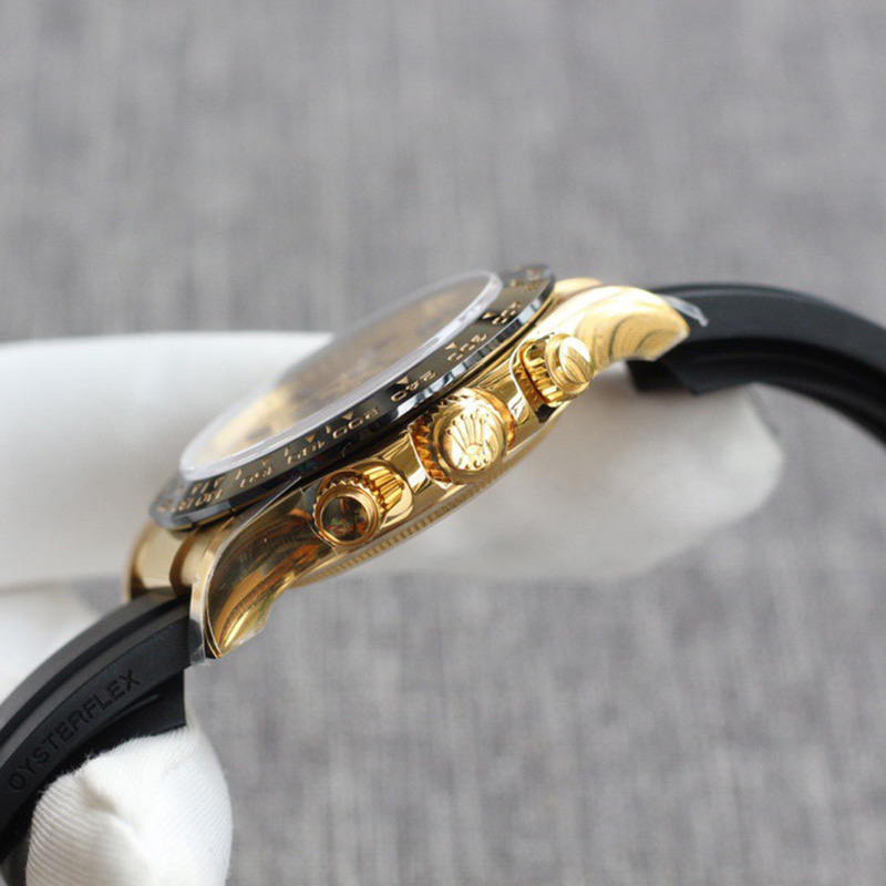 The Daytona’s chronograph feature functions are activated by pushers that screw down like the winding crown when they are not in use, guaranteeing waterproofness to 100 metres. One press to start, stop or reset the chronograph produces a crisp, clear click that was perfected using the most advanced technology. watchmakers also perfected the mechanism to suit the ideal finger pressure on the pushers, and engineered it to provide an instantaneous and accurate start to the timing without sacrificing reliability.