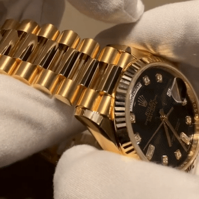 The Rolex fluted bezel is a mark of distinction. Originally, the fluting of the Oyster bezel had a functional purpose: it served to screw the bezel onto the case helping to ensure the waterproofness of the watch. It was therefore identical to the fluting on the case back, which was also screwed onto the case for waterproofness, using specific Rolex tools. Over time, the fluting became an aesthetic element, a genuine Rolex signature feature. Today the fluted bezel is a mark of distinction, in gold on this Day-Date 40.