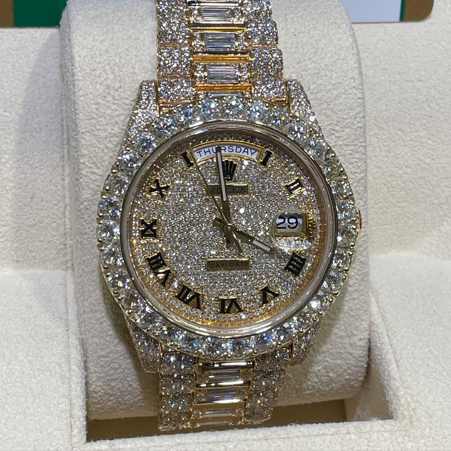 Rolex Day-Date 40mm 18k Yellow Gold Iced Out 25ct Genuine Diamonds Ref 228238