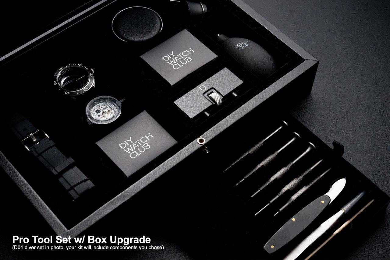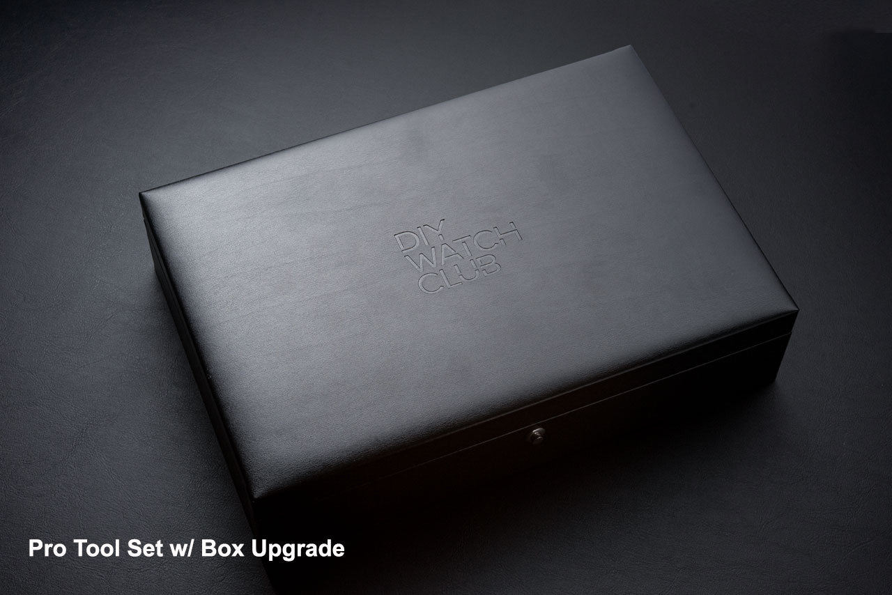 This is our Pro Tool Kit, a DWC in-house design from top to bottom. This is a lot more than a mere step up from standard Amazon watch-making tools; it is a collection of tools we designed and crafted to give you the best watchmaking experience possible.