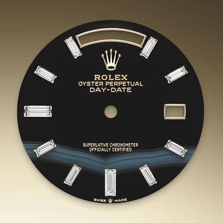Today the fluted bezel is a mark of distinction, in gold on this Day-Date 40.